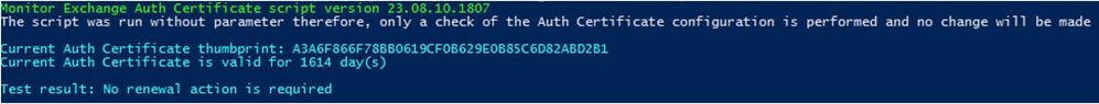 La sortie du script MonitorExchangeAuthCertificate.ps1 ressemblera à ceci si aucune action n’est requise :