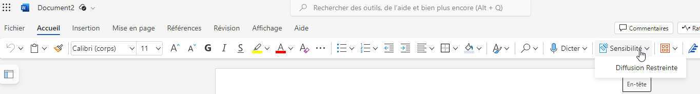 mais force est de constater que l’application Microsoft Office 365 ne possède toujours pas le bouton de sensibilité