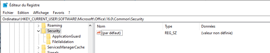 La figure ci dessous détaille le chemin de la base de registre du PC concerné. /