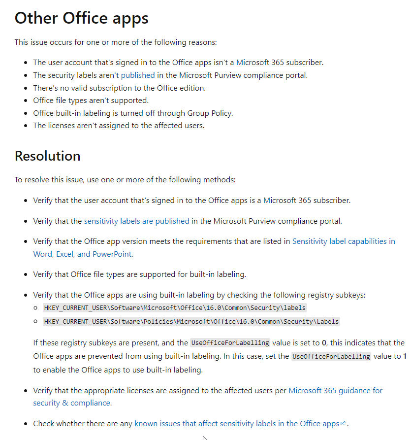 PURVIEW | Sensitivity labels absent from the Office 365 suite