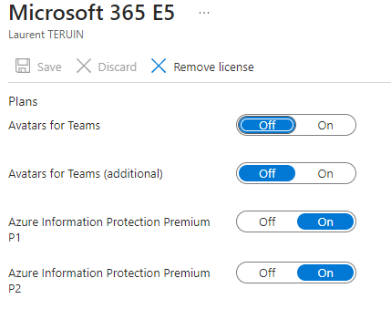 Le support Microsoft nous invite à cocher en plus de la fonctionnalité Azure Information Protection Premium P2 la licence Azure Information Protection Premium P1 comme le montre la figure ci dessous.