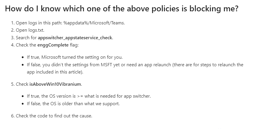 We also looked in the logs.txt to see if a group policy was blocking us, as recommended in the following article Troubleshooting the new Teams installation – Microsoft Teams | Microsoft Learn