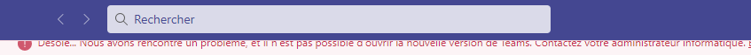 Désolé… Nous avons rencontré un problème, et il n’est pas possible d’ouvrir la nouvelle version de Teams. Contactez votre administrateur