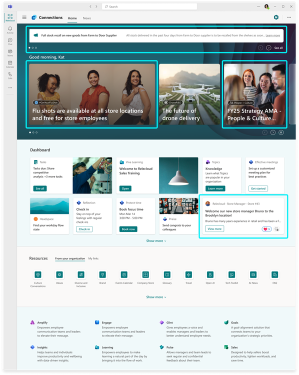 Nous continuons d’investir dans une intégration plus poussée avec Viva Connections, notamment :