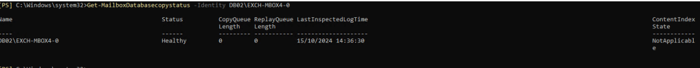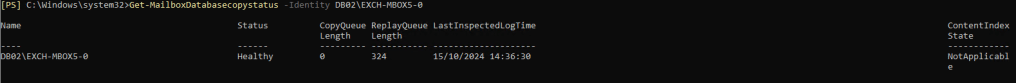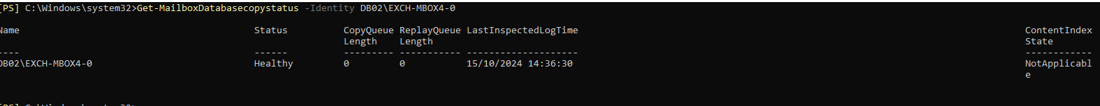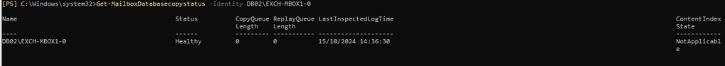 The DatabaseCopyStatus show no replication issue as you can see