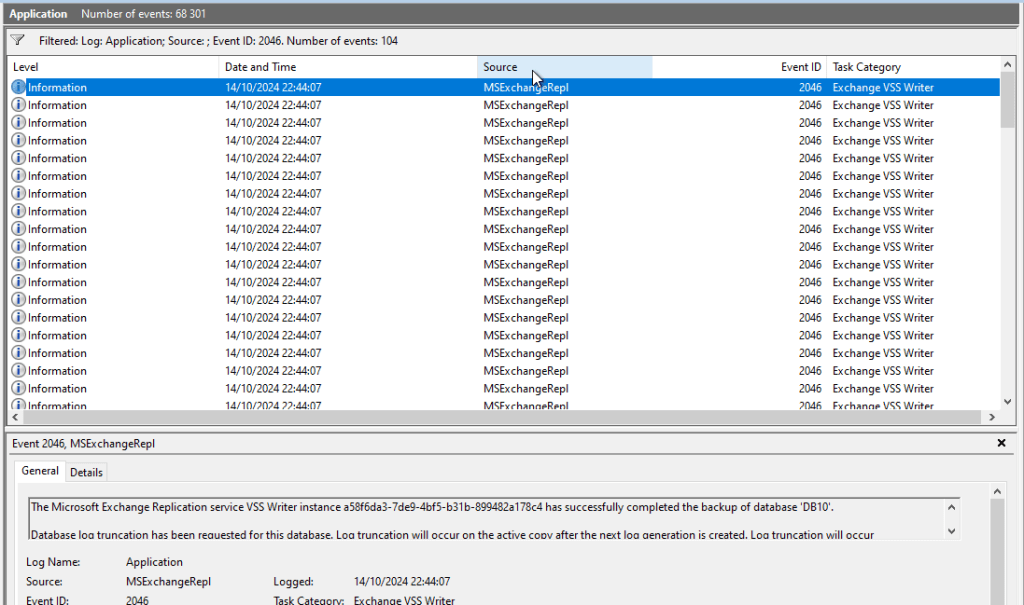 We can see the action triggered by the backup process here the Oct 14 2024
