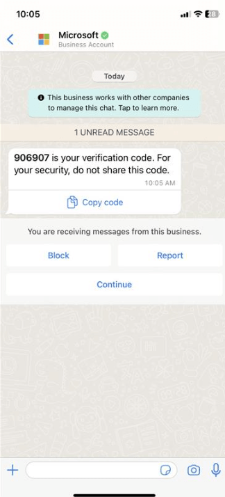 - Vérifiez les paramètres : Vous recevrez un message de vérification de Microsoft avec un code OTP via WhatsApp. Assurez-vous que le numéro de téléphone associé à votre compte WhatsApp est correctement enregistré