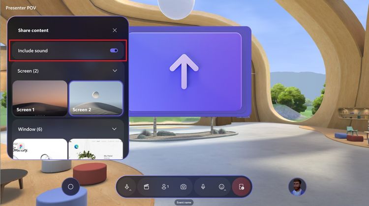 La prise en charge audio du partage d’écran a désormais été ajoutée dans Microsoft Mesh. Les présentateurs pourront désormais choisir d’inclure ou non l’audio système lors du démarrage d’un partage d’écran dans un événement Mesh. Cette fonctionnalité est disponible pour les présentateurs dans Mesh avec une licence Teams Premium.
