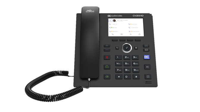 Le téléphone IP C430HD natif Microsoft Teams d’AudioCodes est un téléphone d’entrée de gamme/espace commun spécialement conçu pour offrir des communications unifiées à faible coût mais riches en fonctionnalités dans n’importe quel espace partagé ou cabine téléphonique. Équipé d’un écran LCD couleur de 4,3 pouces, le C430HD prend en charge Microsoft Teams dès sa sortie de la boîte pour une installation rapide et un provisionnement simplifié. En savoir plus