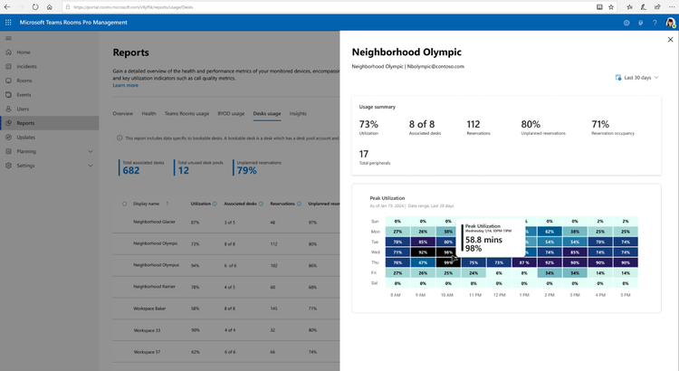 Rapports d’utilisation des bureaux réservables dans le portail de gestion Pro