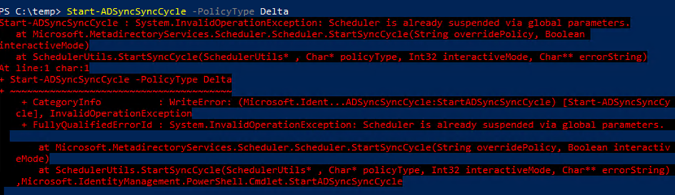 Azure ad connect is critical but can be stopped couple of hours. When we try to start a new cycle we have this issue.