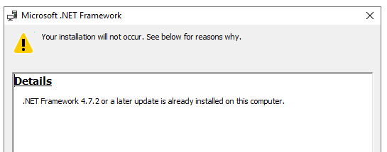 Installing .net Framework 4.7.2 because on the test environnement when we have tested the upgrade this version was required but