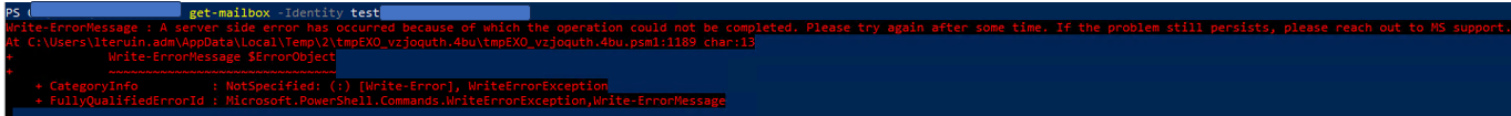 Write-ErrorMessage : A server side error has occurred because of which the operation could not be completed. Please try again after some time. If the problem still persists, please reach out to MS support.