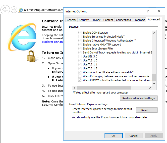 j’active donc le TLS 1.2 je redemarre le serveur et j’essaye de nouveau / so I activate TLS 1.2, restart the server and try again