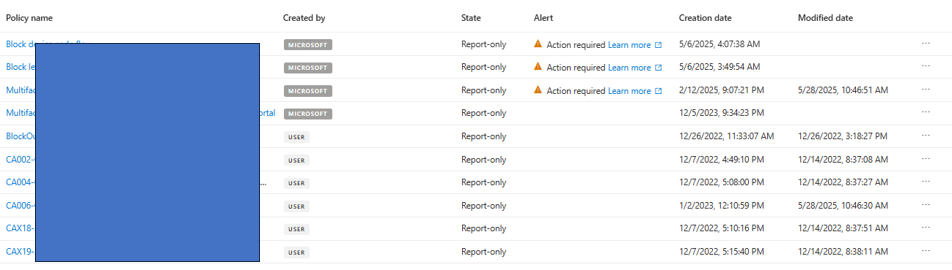 je positionne toute les régles d’accès conditionnels en report Only et je tente à nouveau : Même erreur