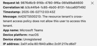 The ressource tenant’s cross-tenant access policy does not allow this user to access this tenant