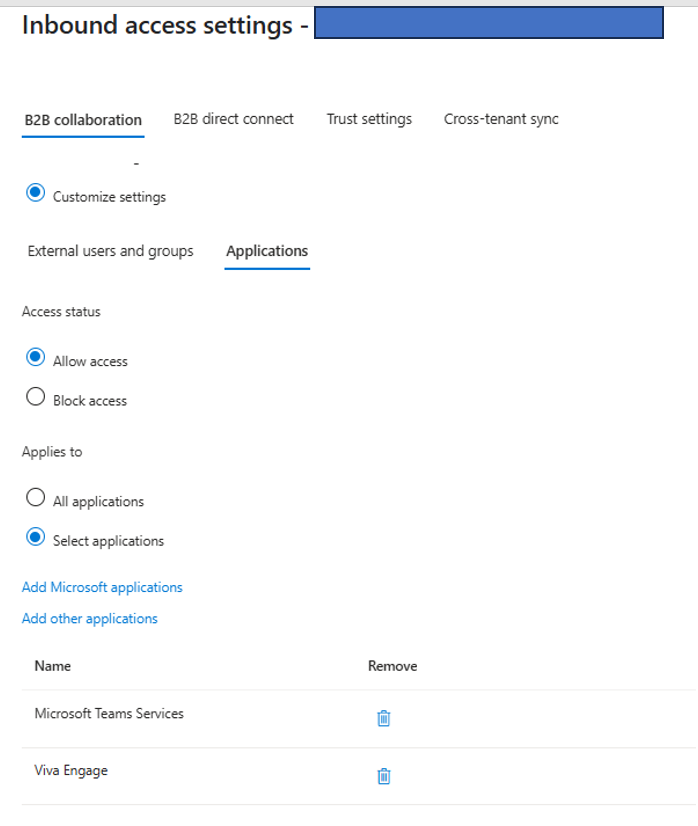 Aprés avoir vérifier la configuration entre les deux tenants, je me suis apercu que dans la configuration du Tenant depuis lequel l’utilisateur essyait de se connecter (tenant source) , la partie OutBound | application ne comprenait pas l’application Microsoft Teams Service . je l’ai ajouter et cela a en partie resolu le probléme