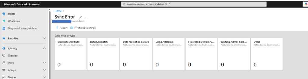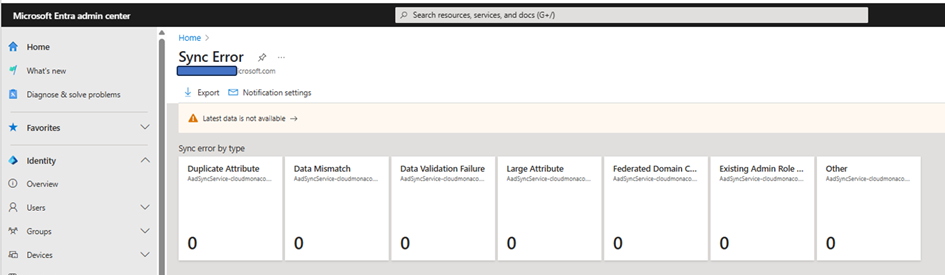 As a result, we do not have Azure AD connect health status information in the tenant azure