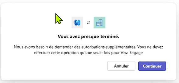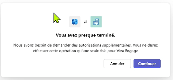 Avec le même compte nous avons essayé de se connecter directement en mode web sur l’application Viva engage et cela fonctionne parfaitement. (https://engage.cloud.microsoft/).