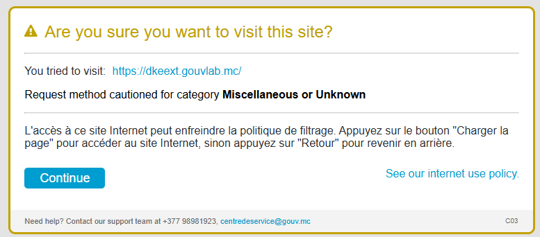 wehn we try from the workstation to access to the DKE Url and because we use a Proxy we have this warning