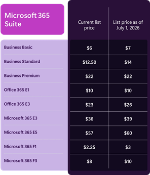 Explore the full value of Business Basic, Business Standard, Business Premium, Office 365 E1, Office 365 E3, Microsoft 365 E3, and Microsoft 365 E5.
