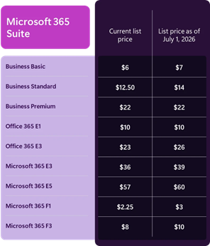 Chez Microsoft, nous donnons à chaque organisation les moyens d’innover — tout en aidant les gens à rester productifs, protégés et préparés pour la suite. Avec plus de 430 millions de personnes utilisant les applications Microsoft 365 et plus de 90 % des entreprises du Fortune 500 faisant confiance à Microsoft 365 Copilot, nous nous engageons à fournir des solutions sécurisées et innovantes pour un avenir propulsé par l’IA. Aujourd’hui, nous annonçons une disponibilité accrue des capacités d’IA, de sécurité et de gestion dans les offres Microsoft 365 en 2026. Avec ces innovations, nous mettrons également à jour nos tarifs commerciaux pour les abonnements à la suite Microsoft 365 à compter du 1er juillet 2026. Nous partageons ces mises à jour dès maintenant pour laisser aux clients suffisamment de temps pour planifier.