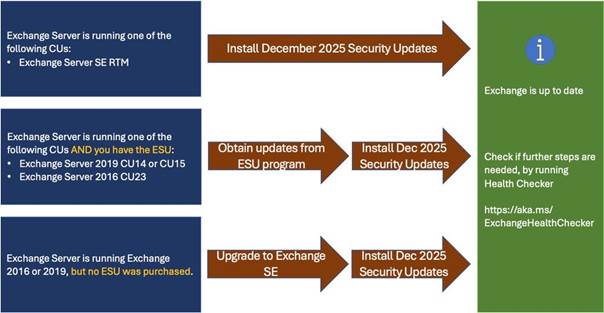 Les clients inscrits au programme Extended Security Update (ESU) sont éligibles pour recevoir les mises à jour de sécurité de décembre 2025 (et ultérieures) pour Exchange Server 2016 et 2019.