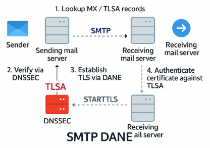 SMTP DANE est un mécanisme de sécurité qui permet à un serveur de messagerie d’authentifier de manière fiable le serveur destinataire avant d’établir une connexion TLS.