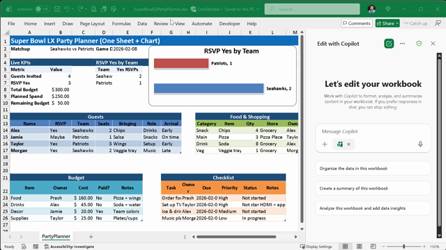 Dans Excel, Copilot exploite désormais automatiquement le contexte le plus pertinent issu des emails, réunions, conversations Teams ou fichiers associés, afin de produire des modifications plus précises et cohérentes. Il devient également possible d’utiliser Copilot pour effectuer des modifications multi‑étapes sur des classeurs Excel stockés localement, aussi bien sur Windows que sur macOS, sans obligation de stockage dans le cloud.