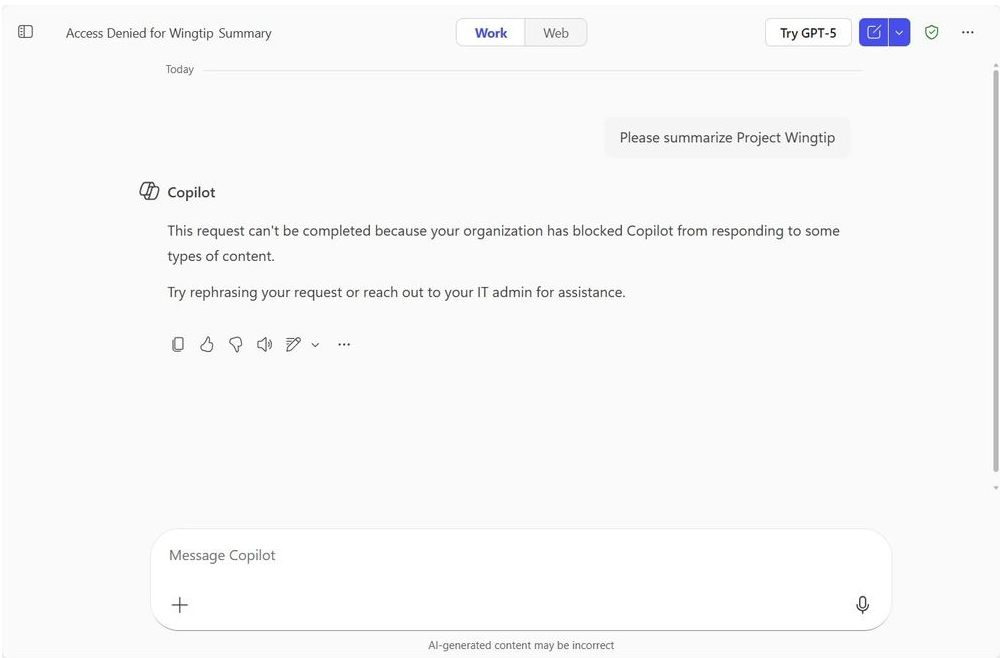 Les capacités DLP de Microsoft Purview s’étendent désormais aux requêtes Copilot, y compris celles liées à la recherche web. Les organisations peuvent empêcher l’utilisation de données sensibles dans les prompts ou limiter certaines actions de Copilot lorsque des informations confidentielles sont détectées, réduisant ainsi les risques de fuite de données.